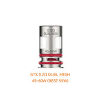 Resistance: GTX 0.2ohm Mesh (NiCr,45 - 60W,DTL), GTX 0.3ohm Mesh (NiCr,32 - 45W,DTL)