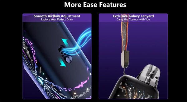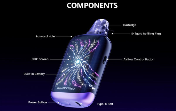 The Lost Vape Galaxy S360 Pod Kit redefines style and functionality with the world's first 360 degree Galaxy Screen in a pod system. Its ergonomic body houses a robust 1400mAh built-in battery, delivering a stable 5W–35W output for a variety of vaping preferences. Paired with the latest 0.8ohm Ursa V3 Top Filling Cartridge (2.5ml), it ensures smooth, flavorful vapor and mess-free refilling. The full-circle display provides intuitive access to all vital vaping information, including battery life, puff count, and working mode. Additional features include adjustable airflow, Type-C fast charging (5V/2A), and a lanyard attachment for convenience on the go. With Single Mesh and Dual Mesh modes, the Galaxy S360 optimizes vapor production and extends coil longevity, making it a versatile and premium choice for pod system enthusiasts.