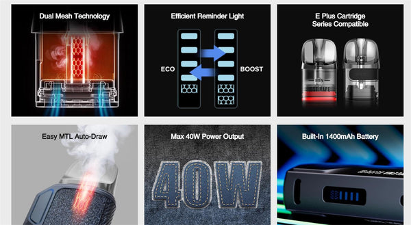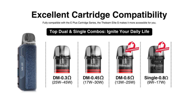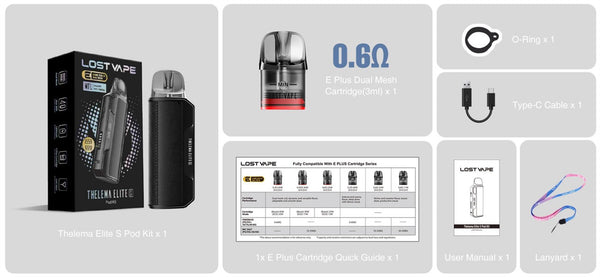 The Lost Vape Thelema Elite S Kit is a compact yet powerful vape device, featuring a 1400mAh battery for all-day use. Available in six stylish colours, it supports fast Type-C charging for convenience.Thelema Elite S kit Powered by E Core Tech 3.0 Dual Mesh, Thelema Elite S refines MTL vaping with BOOST & ECO modes and the E Plus Dual Mesh Cartridge.Enjoy enhanced throat hit, extended coil lifespan, and a leak-resistant design for a richer, longer-lasting experience. With Dual Mesh 0.6ohm for deep intensity or opt for Single Mesh 0.8ohm for a smoother draw, Thelema Elite S keeps you going anytime, anywhere. Designed for both flavour and cloud chasers, the Thelema Elite S offers a sleek, ergonomic design with cutting-edge technology for an exceptional vaping experience.