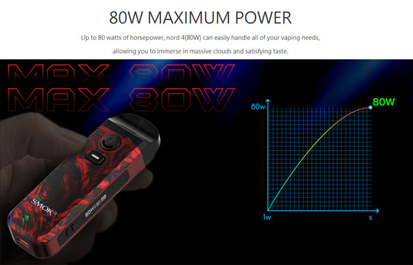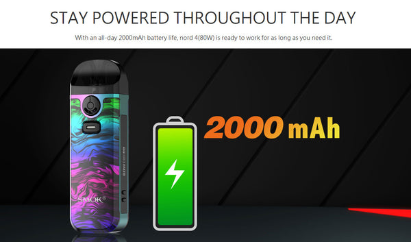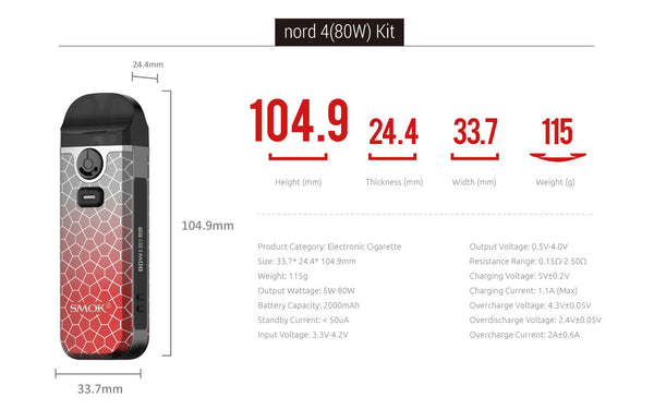 Smok nord 4(80W) is an emblematic pod system kit with versatile capabilities, which can give full play to the performance and advantages of the entire device. It has a built-in 2000mAh battery, enough to provide a maximum power of 80 watts. The kit comes with two 4.5ml nord 4 pods, one with an RPM 2 mesh coil and the other with an RPM mesh coil. Besides, two air-inlet rings are cleverly designed on the top of the device for free adjustment of air intake. We build this stunner for you, and you make it yours. Innovation keeps changing the vaping experience!
