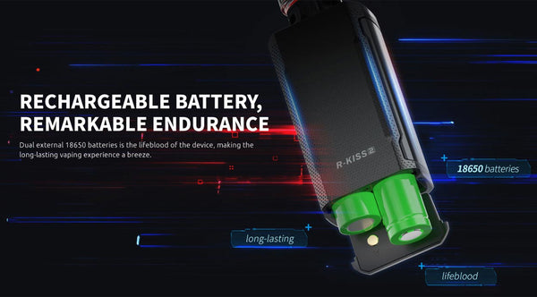 Stay up-to-date, stay sought-after. Compared to its predecessor, R-KISS 2 maintains the equipment of dual 18650 batteries to de-liver up to 200W output and elevates vaping to a new level...
