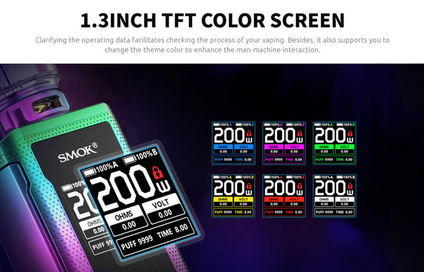 Stay up-to-date, stay sought-after. Compared to its predecessor, R-KISS 2 maintains the equipment of dual 18650 batteries to de-liver up to 200W output and elevates vaping to a new level with the advanced IQ-S chip, bypass mode and TFV18 Mini tank with a liquid capacity of 6.5ml to boost the versatility and mightiness. The inherent TFT color screen, extended to 1.3inch, optimizes the content for valuable information indeed. Innovation keeps changing the vaping experience!