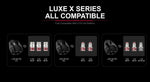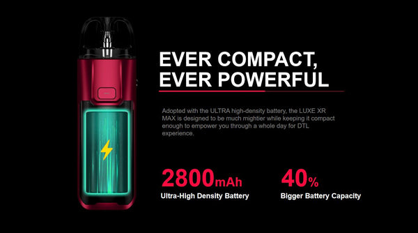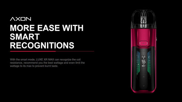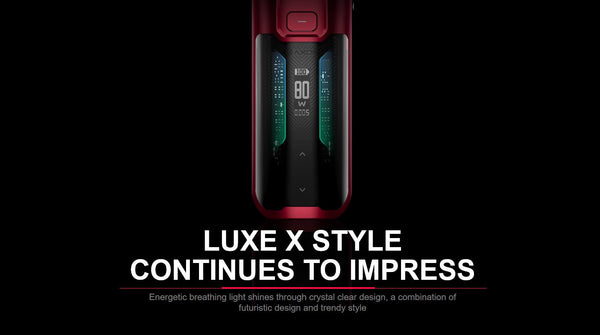 Vaporesso LUXE XR Max Kit which innovative COREX heating technology, Luxe XR Max Kit power by built-in a 2800mAh battery with Max 80W output and Type-C charging. Supported by the COREX heating technology and AXON Chip, it can ensures faster heating, boosted flavor and bigger clouds. It adopts the 0.4ohm/0.2ohm Mesh LUXE X Pods with customized drip tips for MTL/DL experience. You can easily switch the pod to adjust the airflow from MTL to DTL. Its slim & crystal clear body with 3 layers of coating is durable enough to resist daily abrasion & dropping. Moreover, its auto lock function will lock the device after 8S pressing and secured mode to protect from accidentally misfiring.